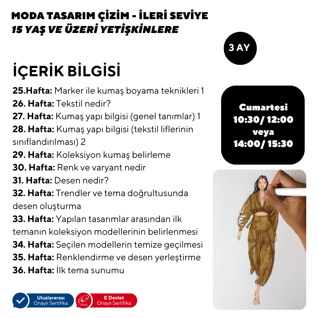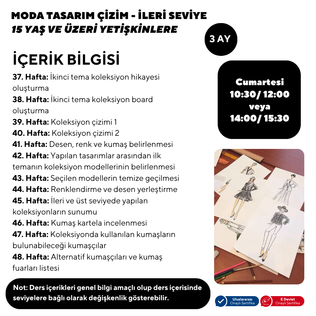 WAS GEWINNEN SIE? Anatomiestudien, Zeichenübungen für die menschliche Figur, Modeillustration und -kolorierung, Prozess des Kleidungsdesigns und der Kollektionserstellung, Portfolioerstellung für nationale und internationale Modeschulen.