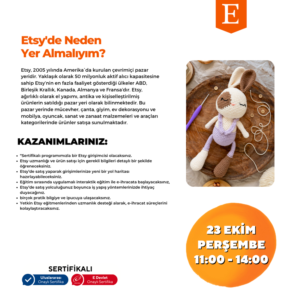 Unser Training, das speziell für diejenigen entwickelt wurde, die noch keinen Etsy-Shop haben oder über ausreichende Kenntnisse verfügen, hilft den Teilnehmern: Vor, während und nach der Eröffnung eines Etsy-Shops erklären wir die Einführung, Entwicklung und den endgültigen Nutzen, die Vorbereitungsphase sowie alle theoretischen und technischen Informationen, die Sie beachten müssen, um eine zukünftige Schließung Ihres Shops zu vermeiden. Wir bieten außerdem interaktive Schulungen zur Shop-Eröffnung, Einrichtung, Produkteingabe und allen weiteren Details an.