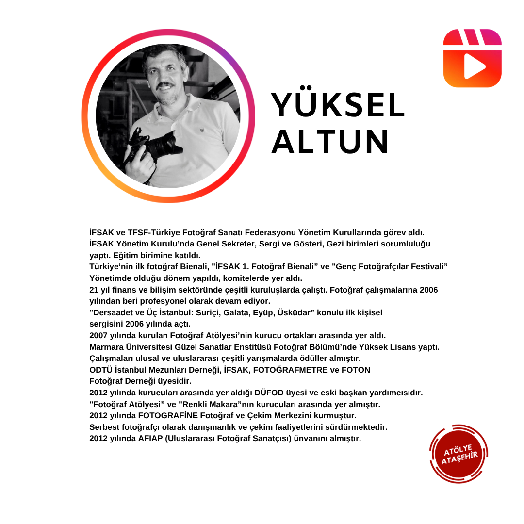 YÜKSEL ALTUN FSAK ve TFSF-Türkiye Fotoğraf Sanatı Federasyonu Yönetim Kurullarında görev aldı. İFSAK Yönetim Kurulu’nda Genel Sekreter, Sergi ve Gösteri, Gezi birimleri sorumluluğu yaptı. Eğitim birimine katıldı.