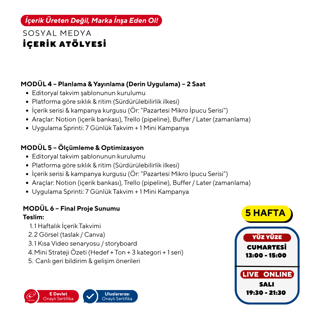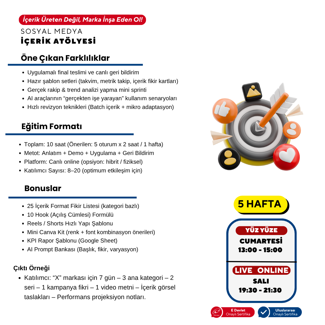 In diesem 10-stündigen, intensiven und praxisorientierten Workshop lernen Sie, wie Sie eine erkenntnisbasierte Inhaltsstrategie entwickeln, kreative und konsistente Formate erstellen, datenbasiert optimieren und einen echten 1-Wochen-Inhaltskalender erstellen. Wenn Sie die Schulung verlassen, haben Sie Ihr Portfolio, Ihr System und Ihr Folgesystem in der Hand.