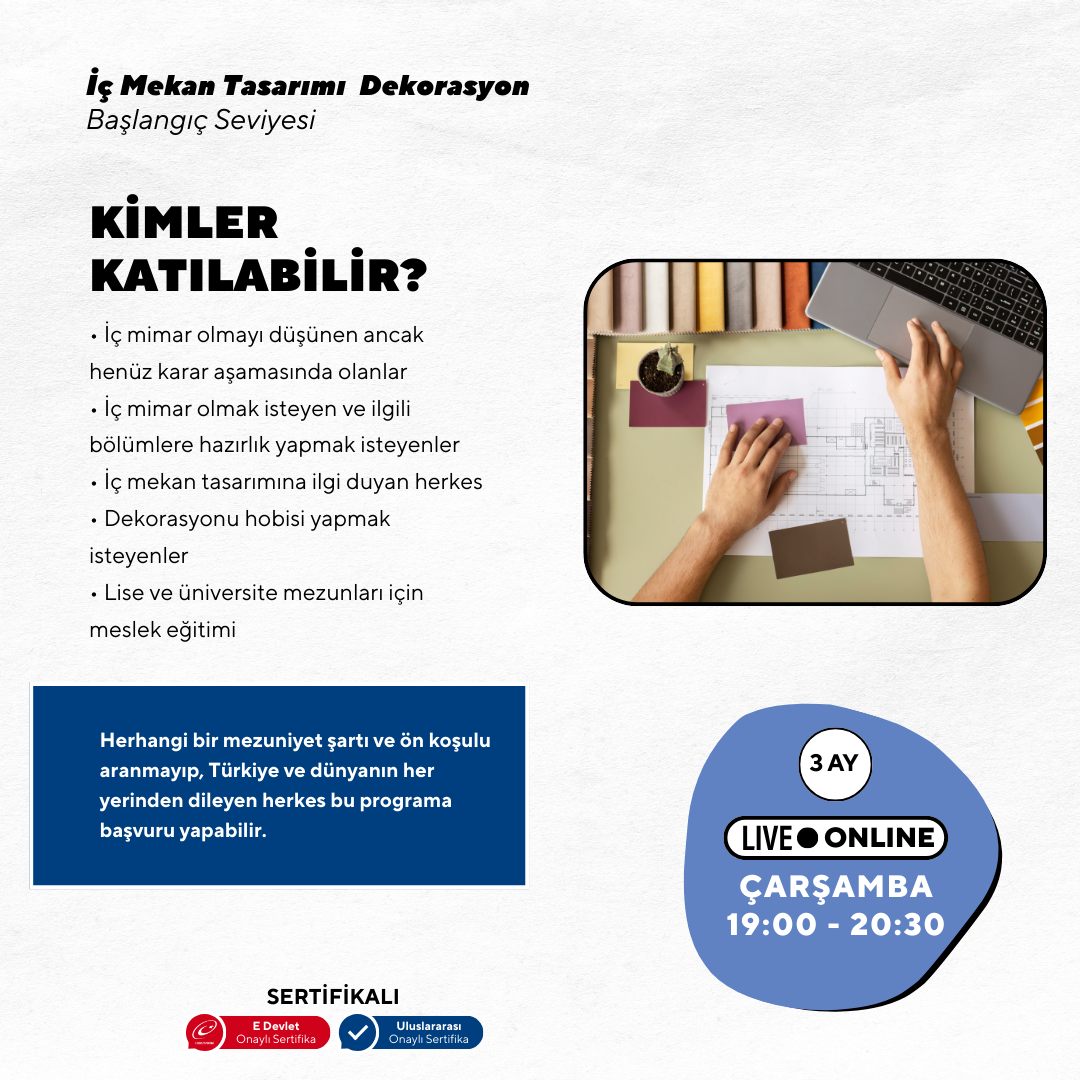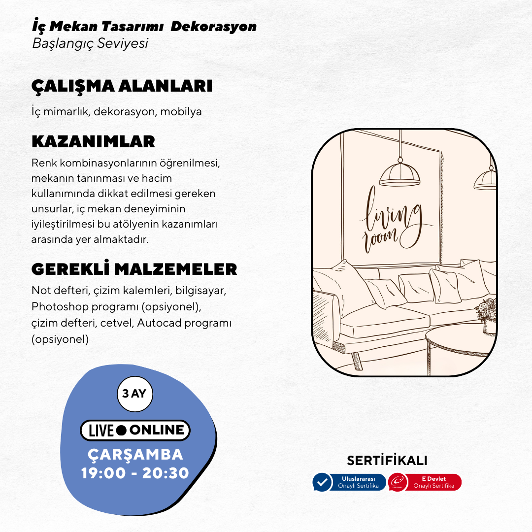 In today's developing world, where we spend long hours due to the living conditions and the importance of interior design and visuality are now sought after values. This training is designed to provide training for the profession.